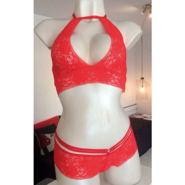 Conjunto Nina es un hermoso traje de dos piezas en color rojo, confeccionado especialmente para ti, hecho en encaje para que luzcas hermosa y sensual.